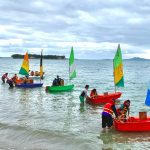However a few boats got stuck together and ended up being blown backwards, which caused a raucous chorus of support and laughter from the kids and parents on the beach.